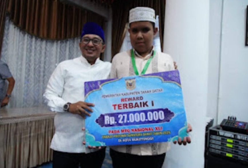 Sambut Kepulangan Kafilah MTQ, Bupati Tanah Datar Eka Putra Langsung Serahkan Bonus