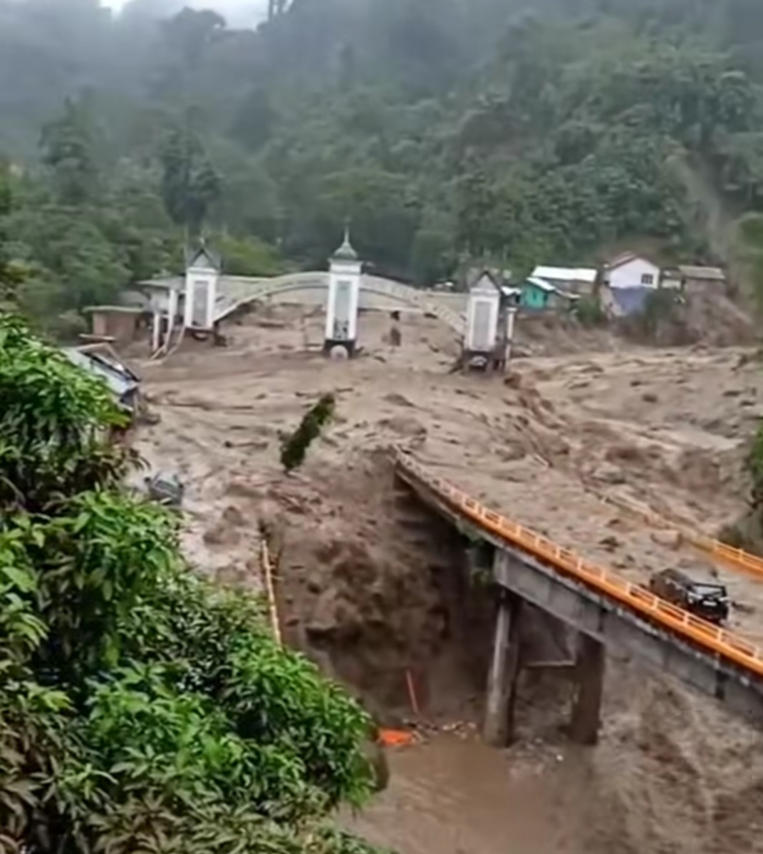Arus air bah dilaporkan datang secara tiba-tiba dari arah perbukitan, menghantam badan jalan dan struktur jembatan hingga ambruk. Deretan warung serta beberapa rumah yang berada di sepanjang jalur turut tersapu.