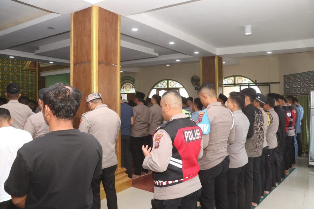 Bukittinggi.Top — Polresta Bukittinggi bersama jamaah Masjid Baitul Amin Asrama Polresta Bukittinggi melaksanakan Sholat Ghaib usai Sholat Jumat, 05 Desember 2025. Kegiatan ibadah ini digelar sebagai bentuk doa bersama dan ungkapan duka cita mendalam atas jatuhnya korban jiwa akibat bencana alam yang melanda sejumlah wilayah di Sumatera.