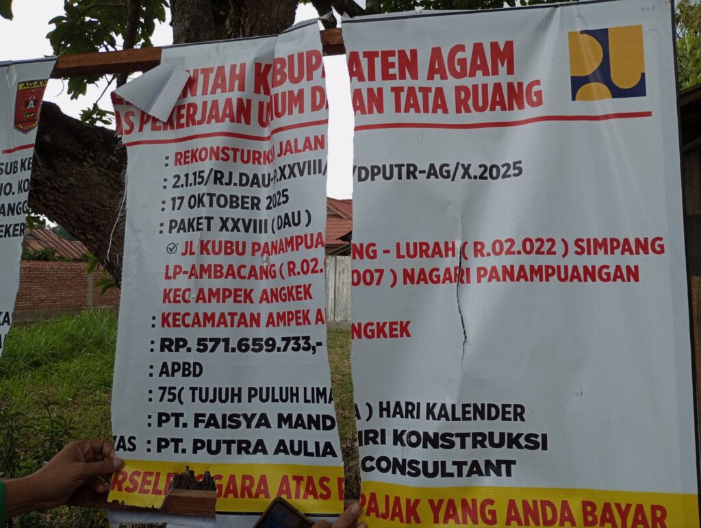 Proyek rekontruksi jalan untuk 2 ruas jalan ini dilaksanakan sejak 17 Oktober 2025 selama 75 hari yang menggunakan dana APBD Kabupaten Agam sebesar Rp. 571 juta lebih yang dilaksanakan oleh PT. Faisya Mandiri Kontruksi dengan Konsultan Pengawas PT. Putra Aulia Consultant.