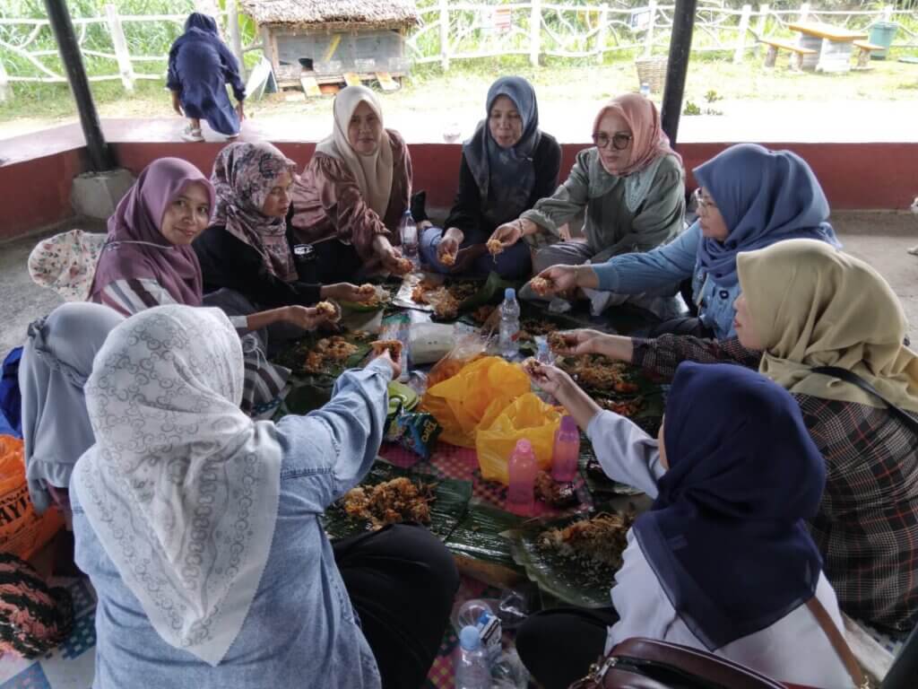 Selain menikmati keindahan alam Panorama Baru, para kader juga memanfaatkan momen kebersamaan dengan menyantap hidangan yang telah disiapkan bersama.
