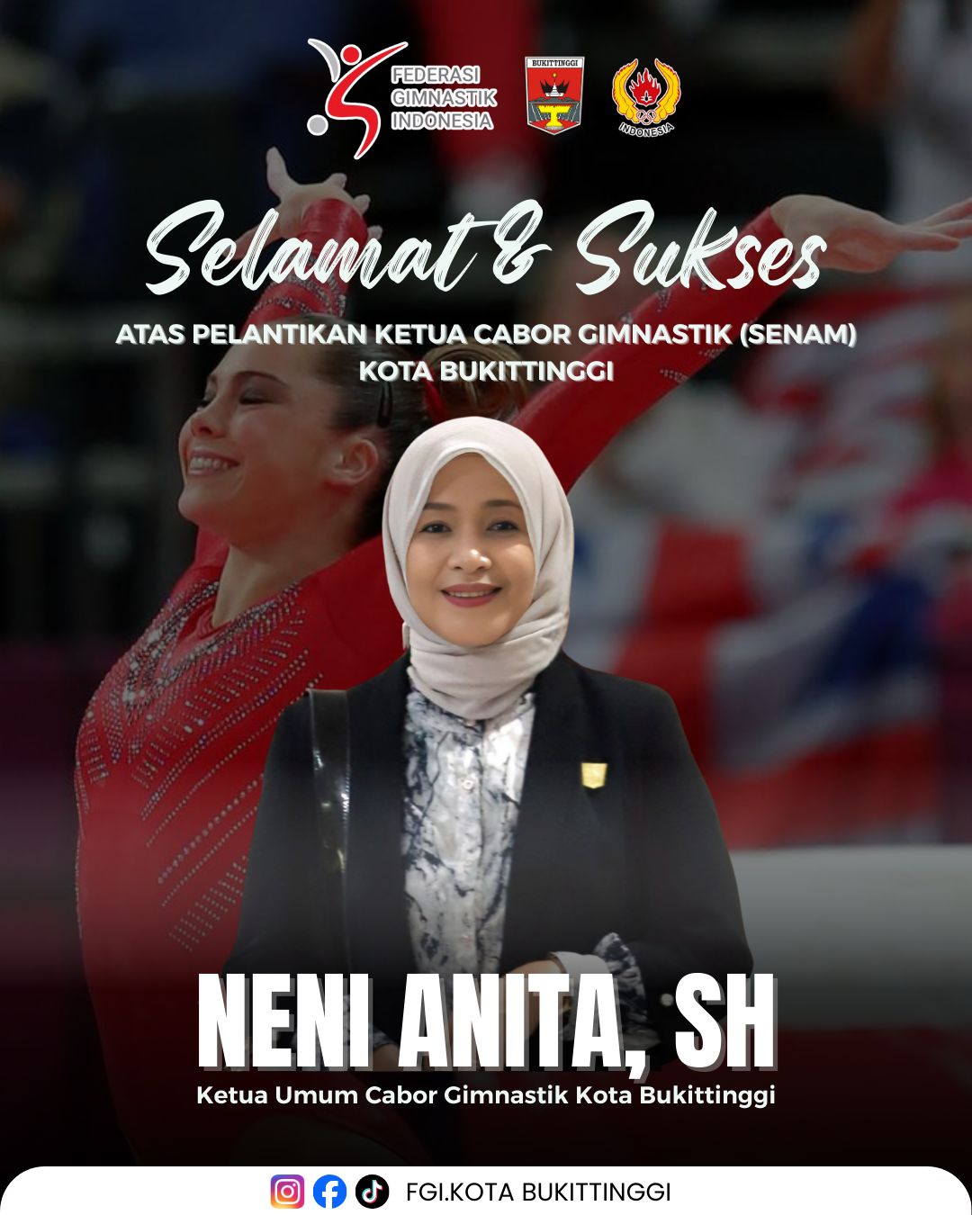 BUKITTINGGI.TOP – Neni Anita SH resmi terpilih sebagai Ketua Pengurus Cabang Federasi Gymnastic Indonesia (FGI) Kota Bukittinggi periode 2025–2029, melalui Musyawarah Cabang Olahraga FGI yang digelar pada 18 Desember 2025 di Sekretariat KONI Kota Bukittinggi.